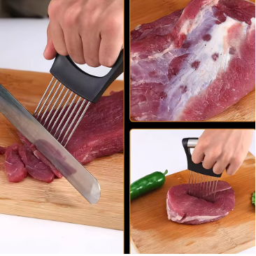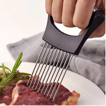 1 st roestvrijstalen uiensnijder houder, multifunctionele vleesvermalsers, groente aardappel tomaat citroen snijgereedschap, volledige grip ha
